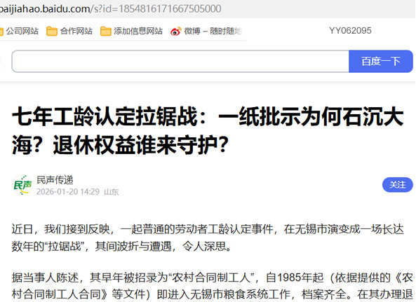 近日,我们接到反映,一起普通的劳动者工龄认定事件,在无锡市演变成一场长达数年的“拉锯战”,其间波折与遭遇,令人深思。